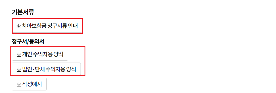 치과치료확인서, 보험금청구서, 개인신용 정보 처리 동의서 다운로드 방법 안내드립니다.