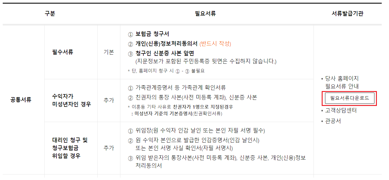 ㄱ. 한화손해보험 사이트에 접속해주세요![]() ㄴ. 메인 사이트 하단에 " 필요서류안내"를 클릭해주세요 ![]() 3. 필요서류 다운로드를 통하여 "보험금청구서" 개인정보처리동의서" "치과치료확인서" 다운로드 후 출력하면 됩니다. ![]() |