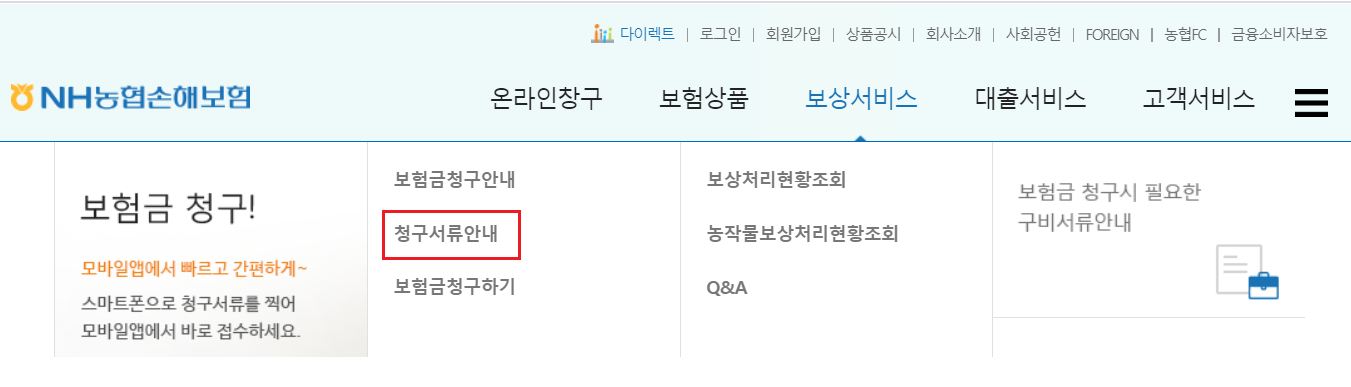 ㄴ. 보상서비스 -> 청구서류안내를 클릭해주세요