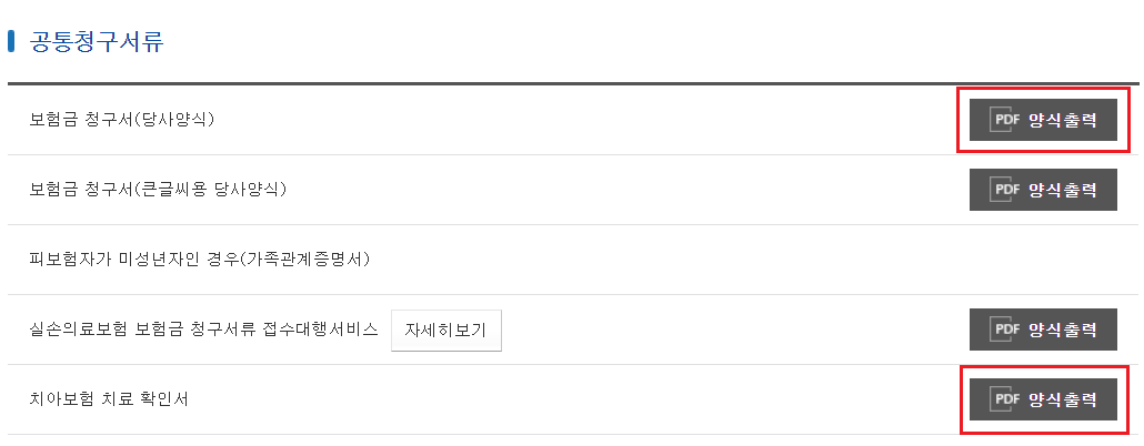 ㄷ. 공통청구서류에서 보험금청구서 / 치아보험 치료확인서 받으시면 됩니다.