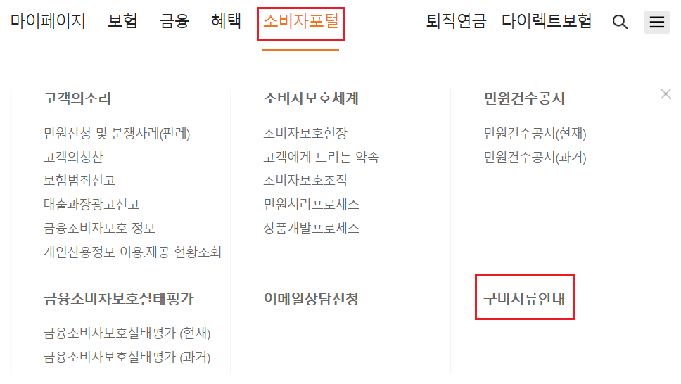 한화생명 공식 사이트 ▶ 전체메뉴 ▶ 보험 ▶ 소비자포털 ▶ 구비서류안내 ▶ 공통서류 ▶ 보험금청구서