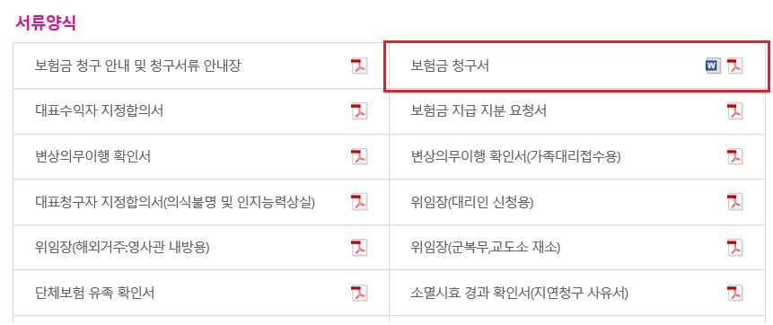 보험금 청구서류 청구방법