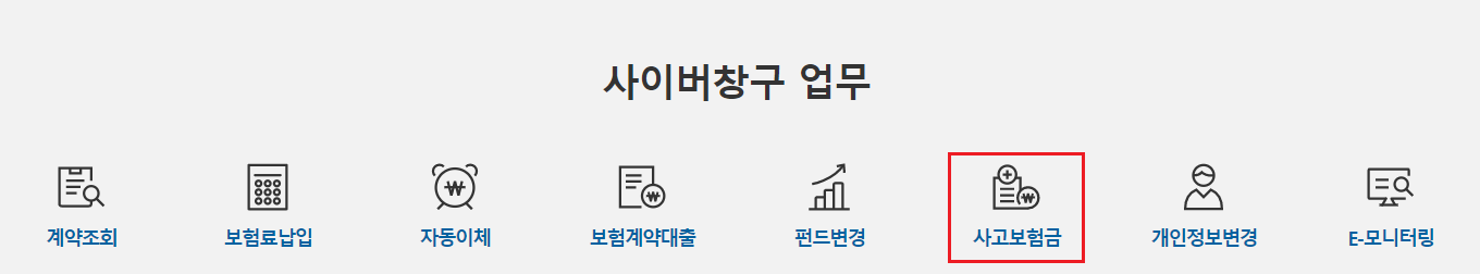 ㄴ 메트라이프생명 홈페이지 접속하여 "사이버청구 업무" 클릭해주세요
