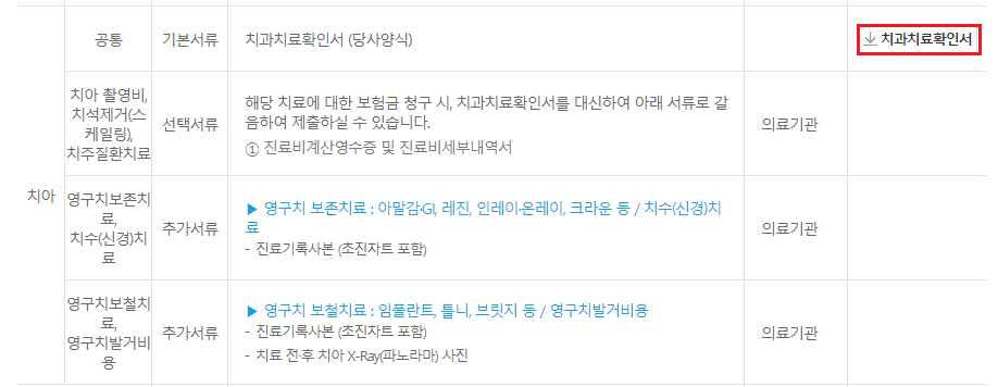 보험사 측에 접수 후 보험금 수령을 받기 위해서는 치과치료확인서, 보험금청구서는 필수입니다.